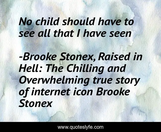 "Brooke Stonex, Raised in Hell: The Chilling and Overwhelming true story of internet icon Brooke Stonex Quotes." Quoteslyfe.com, 2025. Fri. 05 Dec. 2025. <https://www.quoteslyfe.com/quote/No-child-should-have-to-see-all-156049>.