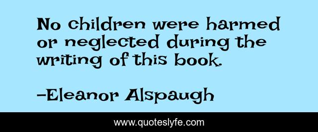 This page presents the quote "No children were harmed or neglected during the writing of this book.". Author of this quote is Eleanor Alspaugh. .