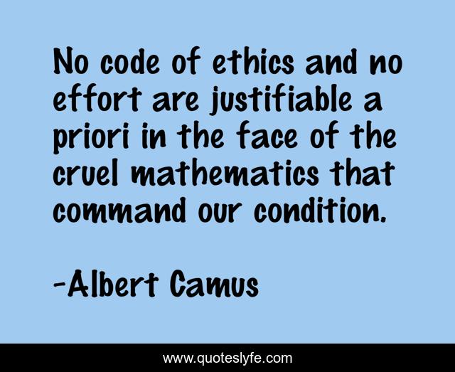 "Albert Camus Quotes." Quoteslyfe.com, 2025. Sun. 07 Dec. 2025. <https://www.quoteslyfe.com/quote/No-code-of-ethics-and-no-effort-7691>.