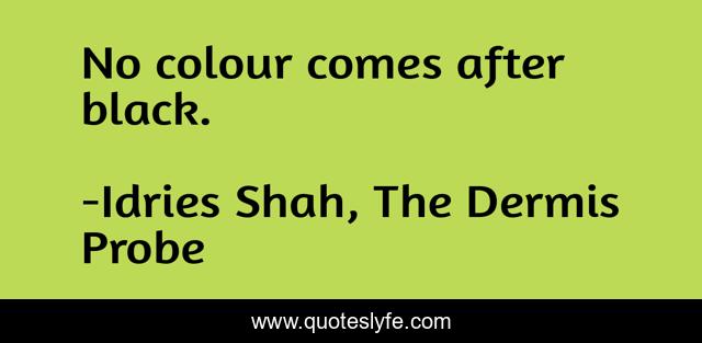 "Idries Shah, The Dermis Probe Quotes." Quoteslyfe.com, 2025. Sat. 06 Dec. 2025. <https://www.quoteslyfe.com/quote/No-colour-comes-after-black-203443>.