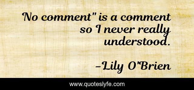 "Lily O'Brien Quotes." Quoteslyfe.com, 2025. Fri. 05 Dec. 2025. <https://www.quoteslyfe.com/quote/No-comment-is-a-comment-so-I-113040>.
