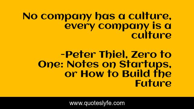 "Peter Thiel, Zero to One: Notes on Startups, or How to Build the Future Quotes." Quoteslyfe.com, 2025. Sun. 07 Dec. 2025. <https://www.quoteslyfe.com/quote/No-company-has-a-culture-every-company-128718>.
