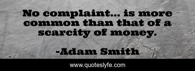 This page presents the quote "No complaint... is more common than that of a scarcity of money.". Author of this quote is Adam Smith. This quote is about common, scarcity,.