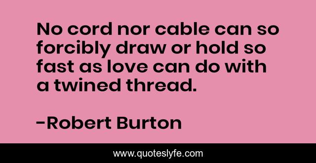 This page presents the quote "No cord nor cable can so forcibly draw or hold so fast as love can do with a twined thread.". Author of this quote is Robert Burton. .