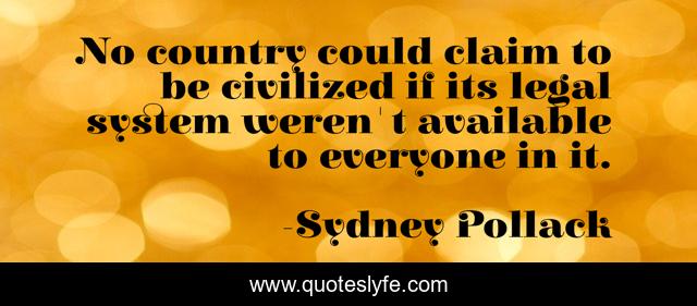 This page presents the quote "No country could claim to be civilized if its legal system weren't available to everyone in it.". Author of this quote is Sydney Pollack. This quote is about country, everyone, system,.
