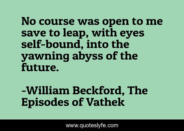 This page presents the quote "No course was open to me save to leap, with eyes self-bound, into the yawning abyss of the future.". Author of this quote is William Beckford, The Episodes of Vathek. .