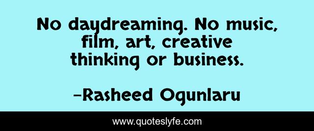 "Rasheed Ogunlaru Quotes." Quoteslyfe.com, 2025. Sun. 07 Dec. 2025. <https://www.quoteslyfe.com/quote/No-daydreaming-No-music-film-art-creative-79204>.