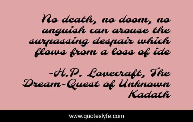 This page presents the quote "No death, no doom, no anguish can arouse the surpassing despair which flows from a loss of ide". Author of this quote is H.P. Lovecraft, The Dream-Quest of Unknown Kadath. This quote is about death, despair, identity-crisis, doom, anguish, identity,.