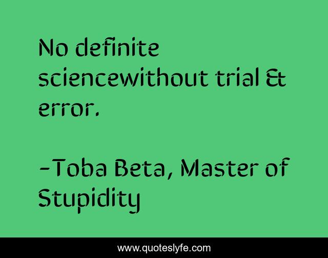 This page presents the quote "No definite sciencewithout trial & error.". Author of this quote is Toba Beta, Master of Stupidity. This quote is about science, error, definite, trial,.