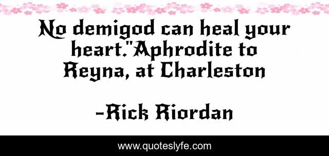 This page presents the quote "No demigod can heal your heart."Aphrodite to Reyna, at Charleston". Author of this quote is Rick Riordan. This quote is about broken, heartbreak, love, affection,.