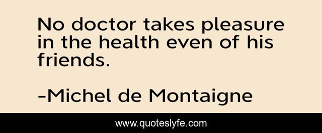 This page presents the quote "No doctor takes pleasure in the health even of his friends.". Author of this quote is Michel de Montaigne. This quote is about medicine, sickness,.