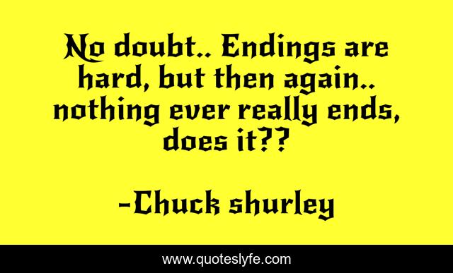 "Chuck shurley Quotes." Quoteslyfe.com, 2025. Fri. 05 Dec. 2025. <https://www.quoteslyfe.com/quote/No-doubt-Endings-are-hard-but-then-231984>.