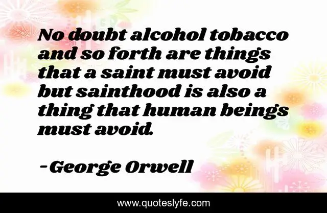 This page presents the quote "No doubt alcohol tobacco and so forth are things that a saint must avoid but sainthood is also a thing that human beings must avoid.". Author of this quote is George Orwell. .
