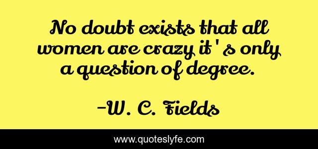 This page presents the quote "No doubt exists that all women are crazy it's only a question of degree.". Author of this quote is W. C. Fields. This quote is about crazy, doubt, question,.