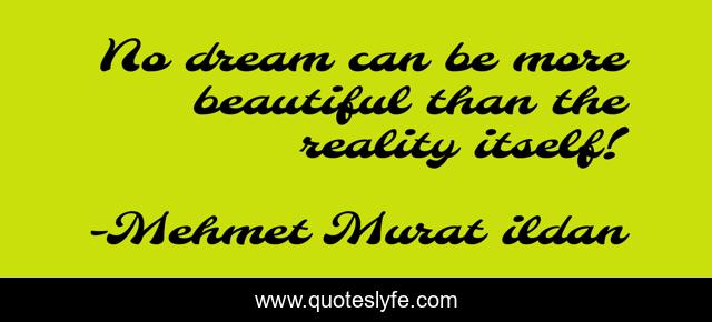 This page presents the quote "No dream can be more beautiful than the reality itself!". Author of this quote is Mehmet Murat ildan. .