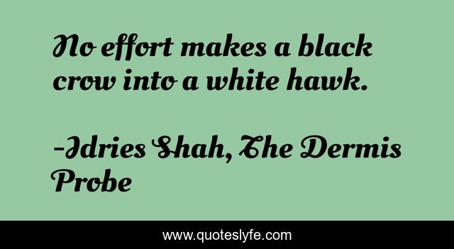 This page presents the quote "No effort makes a black crow into a white hawk.". Author of this quote is Idries Shah, The Dermis Probe. This quote is about proverb, sufis, sufism, wisdom,.