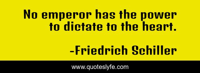 This page presents the quote "No emperor has the power to dictate to the heart.". Author of this quote is Friedrich Schiller. This quote is about heart, emperor, dictate,.
