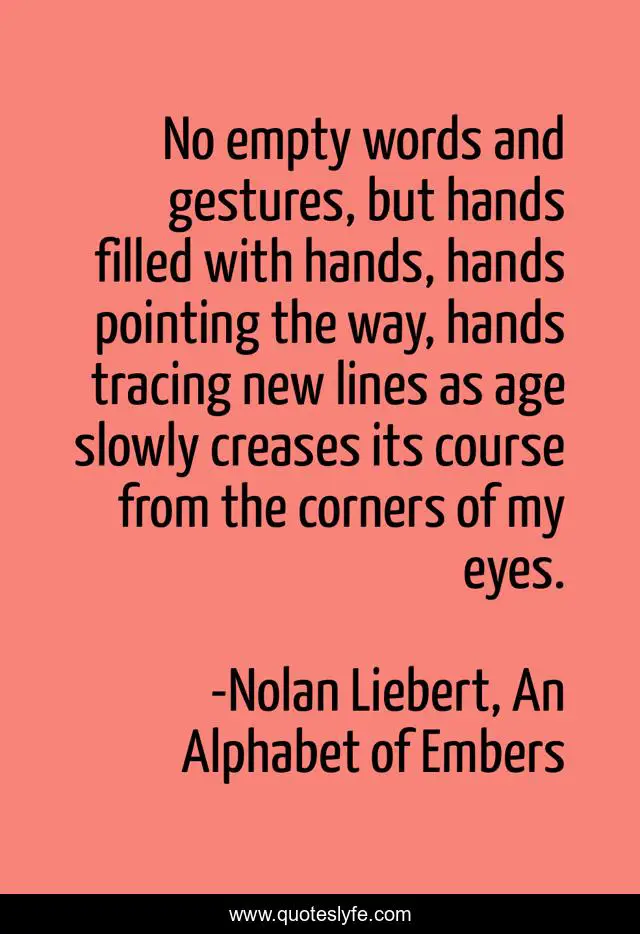 "Nolan Liebert, An Alphabet of Embers Quotes." Quoteslyfe.com, 2025. Fri. 05 Dec. 2025. <https://www.quoteslyfe.com/quote/No-empty-words-and-gestures-but-hands-209251>.