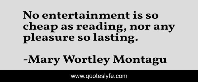 "Mary Wortley Montagu Quotes." Quoteslyfe.com, 2025. Sun. 07 Dec. 2025. <https://www.quoteslyfe.com/quote/No-entertainment-is-so-cheap-as-reading-66465>.