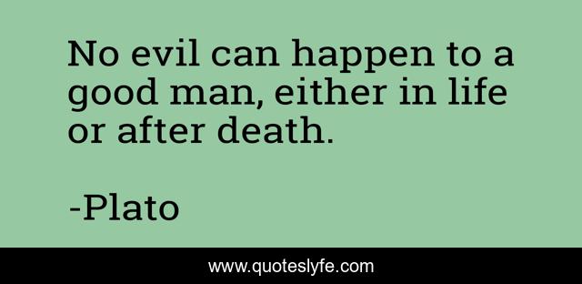 This page presents the quote "No evil can happen to a good man, either in life or after death.". Author of this quote is Plato. This quote is about life, good, evil,.