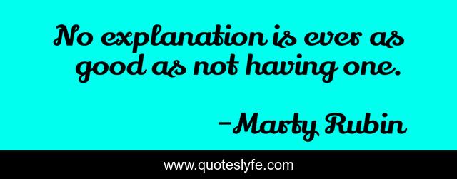 This page presents the quote "No explanation is ever as good as not having one.". Author of this quote is Marty Rubin. This quote is about philosophy, explanations, psychology,.