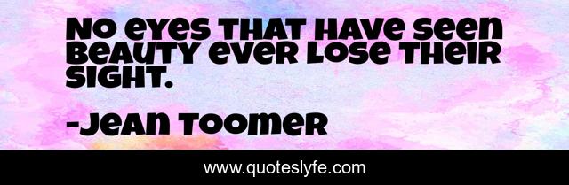 This page presents the quote "No eyes that have seen beauty ever lose their sight.". Author of this quote is Jean Toomer. This quote is about eyes, sight, lose,.