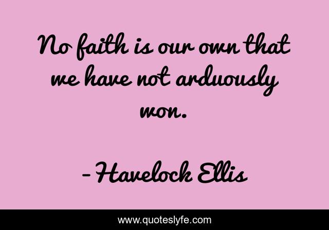 This page presents the quote "No faith is our own that we have not arduously won.". Author of this quote is Havelock Ellis. This quote is about faith, unity,.