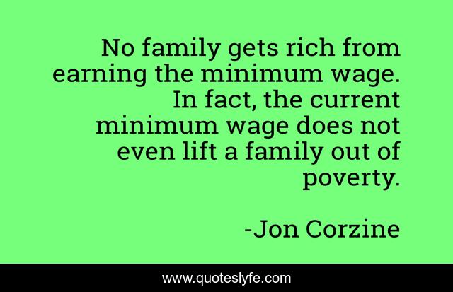 This page presents the quote "No family gets rich from earning the minimum wage. In fact, the current minimum wage does not even lift a family out of poverty.". Author of this quote is Jon Corzine. This quote is about lift, poverty, rich,.