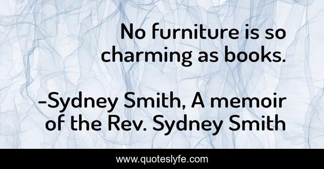 This page presents the quote "No furniture is so charming as books.". Author of this quote is Sydney Smith, A memoir of the Rev. Sydney Smith. This quote is about books, furniture,.