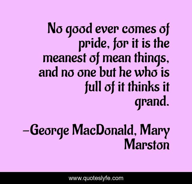This page presents the quote "No good ever comes of pride, for it is the meanest of mean things, and no one but he who is full of it thinks it grand.". Author of this quote is George MacDonald, Mary Marston. .