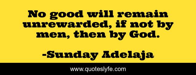 This page presents the quote "No good will remain unrewarded, if not by men, then by God.". Author of this quote is Sunday Adelaja. This quote is about remain, men, unrewarded,.