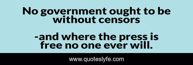 This page presents the quote "No government ought to be without censors". Author of this quote is and where the press is free no one ever will.. .