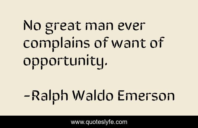 This page presents the quote "No great man ever complains of want of opportunity.". Author of this quote is Ralph Waldo Emerson. .