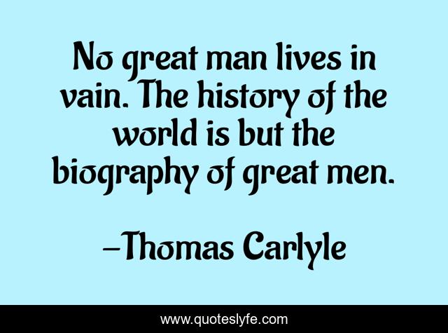 This page presents the quote "No great man lives in vain. The history of the world is but the biography of great men.". Author of this quote is Thomas Carlyle. This quote is about world, great, man,.