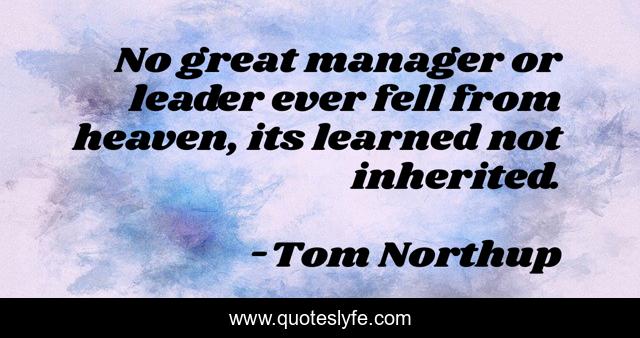 This page presents the quote "No great manager or leader ever fell from heaven, its learned not inherited.". Author of this quote is Tom Northup. This quote is about management, leadership,.