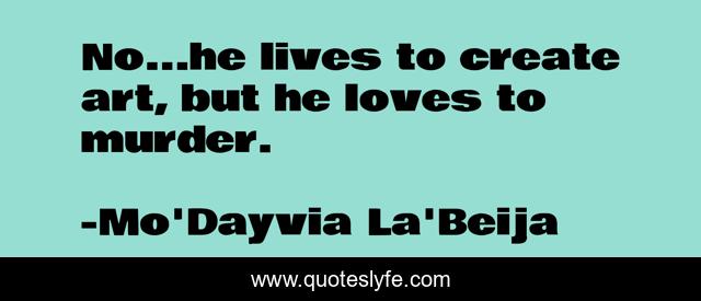 This page presents the quote "No...he lives to create art, but he loves to murder.". Author of this quote is Mo'Dayvia La'Beija. This quote is about murder, mask, mackenrowe, red, mark,.