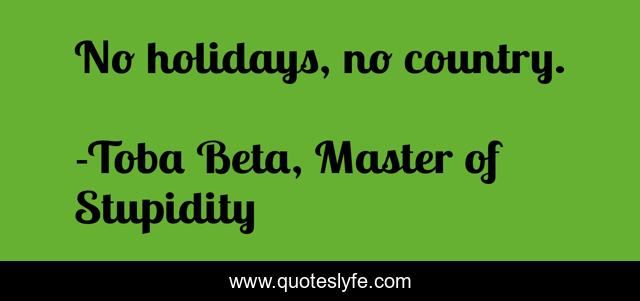 "Toba Beta, Master of Stupidity Quotes." Quoteslyfe.com, 2025. Mon. 08 Dec. 2025. <https://www.quoteslyfe.com/quote/No-holidays-no-country-258325>.