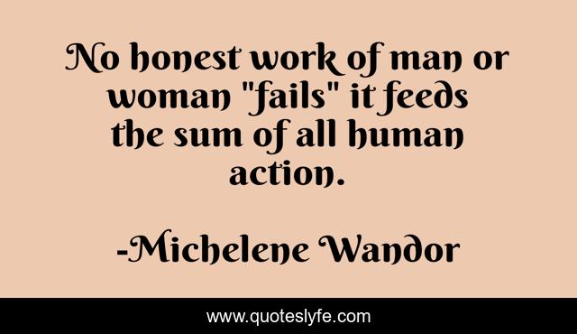 This page presents the quote "No honest work of man or woman "fails" it feeds the sum of all human action.". Author of this quote is Michelene Wandor. This quote is about failures, mistakes,.