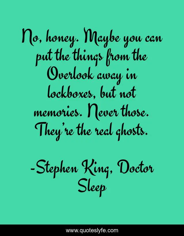 This page presents the quote "No, honey. Maybe you can put the things from the Overlook away in lockboxes, but not memories. Never those. They’re the real ghosts.". Author of this quote is Stephen King, Doctor Sleep. This quote is about memories, ghosts,.