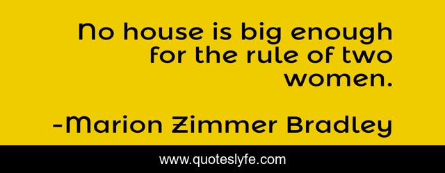 This page presents the quote "No house is big enough for the rule of two women.". Author of this quote is Marion Zimmer Bradley. .