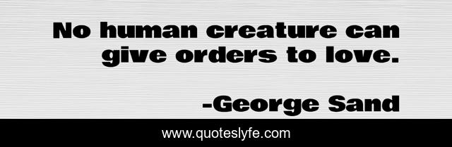 This page presents the quote "No human creature can give orders to love.". Author of this quote is George Sand. This quote is about to love, human, give,.