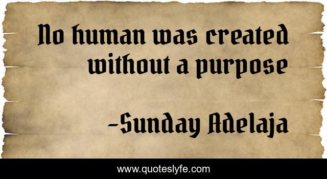 "Sunday Adelaja Quotes." Quoteslyfe.com, 2025. Sat. 06 Dec. 2025. <https://www.quoteslyfe.com/quote/No-human-was-created-without-a-purpose-40041>.