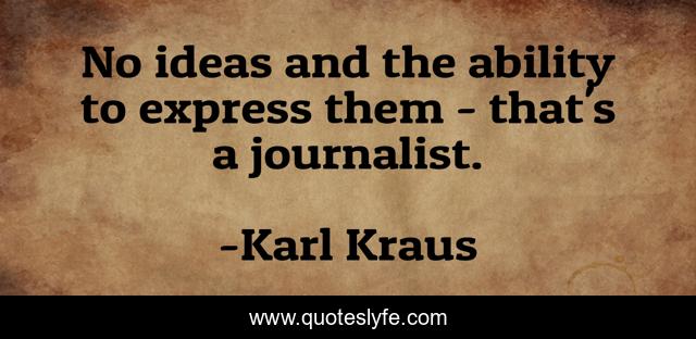 This page presents the quote "No ideas and the ability to express them - that's a journalist.". Author of this quote is Karl Kraus. This quote is about express, ideas, ability,.