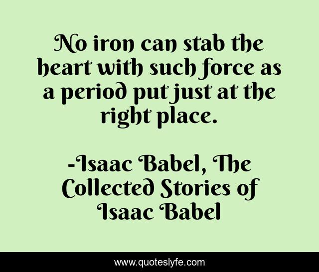 This page presents the quote "No iron can stab the heart with such force as a period put just at the right place.". Author of this quote is Isaac Babel, The Collected Stories of Isaac Babel. .