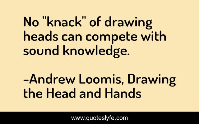 This page presents the quote "No "knack" of drawing heads can compete with sound knowledge.". Author of this quote is Andrew Loomis, Drawing the Head and Hands. .