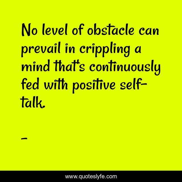 This page presents the quote "No level of obstacle can prevail in crippling a mind that's continuously fed with positive self-talk.". Author of this quote is . This quote is about edmond-mbiaka, positive-self-talk, obstacles, mind, obstacle, a-crippled-mind, prevail,.
