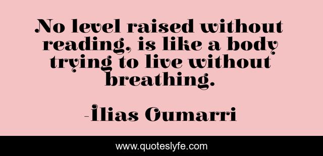This page presents the quote "No level raised without reading, is like a body trying to live without breathing.". Author of this quote is Ilias Oumarri. This quote is about simile, life, education, knowledge, experience, reality, books, truth, reading,.