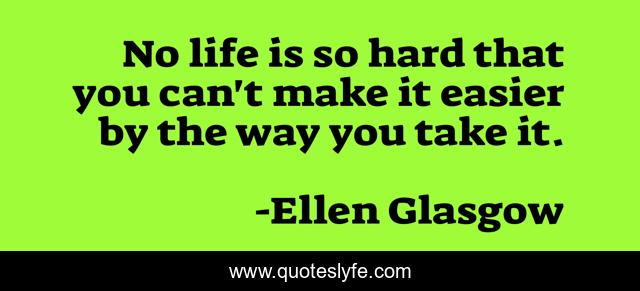This page presents the quote "No life is so hard that you can't make it easier by the way you take it.". Author of this quote is Ellen Glasgow. .