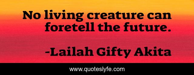 "Lailah Gifty Akita Quotes." Quoteslyfe.com, 2025. Sat. 06 Dec. 2025. <https://www.quoteslyfe.com/quote/No-living-creature-can-foretell-the-future-47836>.