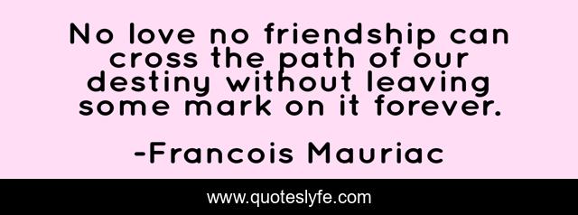 This page presents the quote "No love no friendship can cross the path of our destiny without leaving some mark on it forever.". Author of this quote is Francois Mauriac. This quote is about love, affection,.